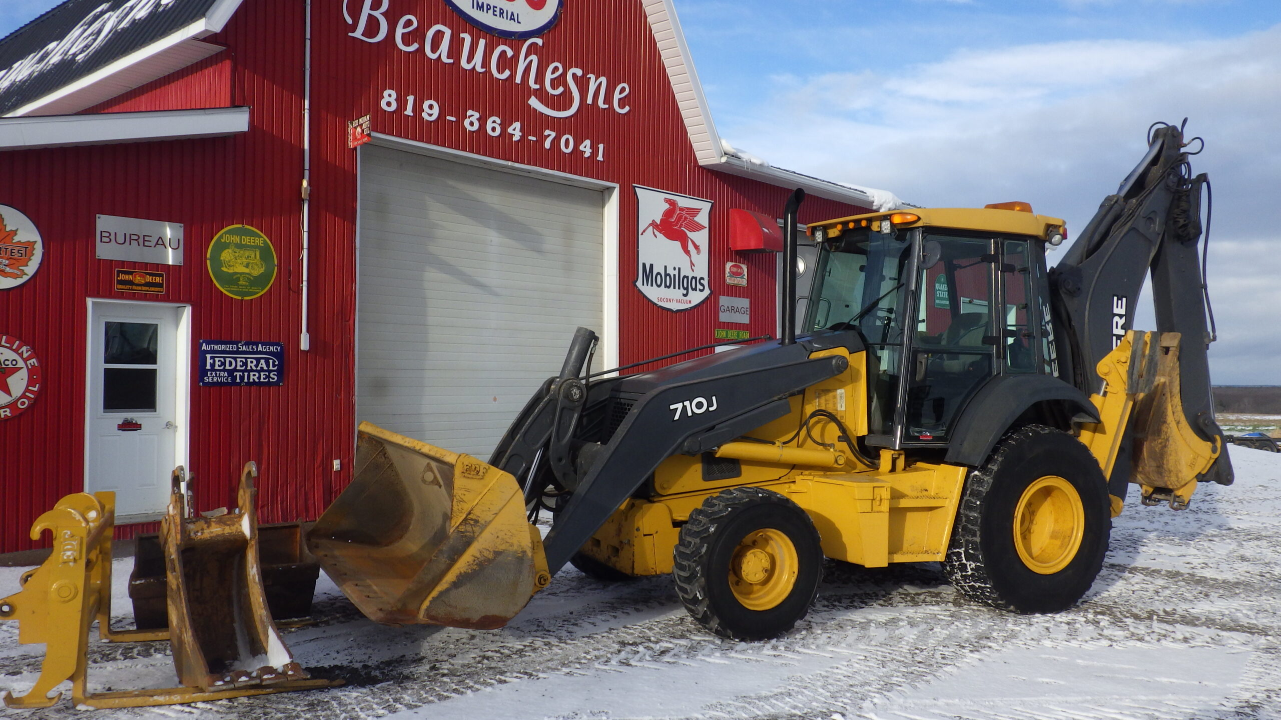 Pépine John Deere 710J, 2009, 6200H., Quick attache oil avant et arriere fourche et bucket et 3 bucket arriere transmission Powershift et pilot control et boom extensible.. 56 900 $