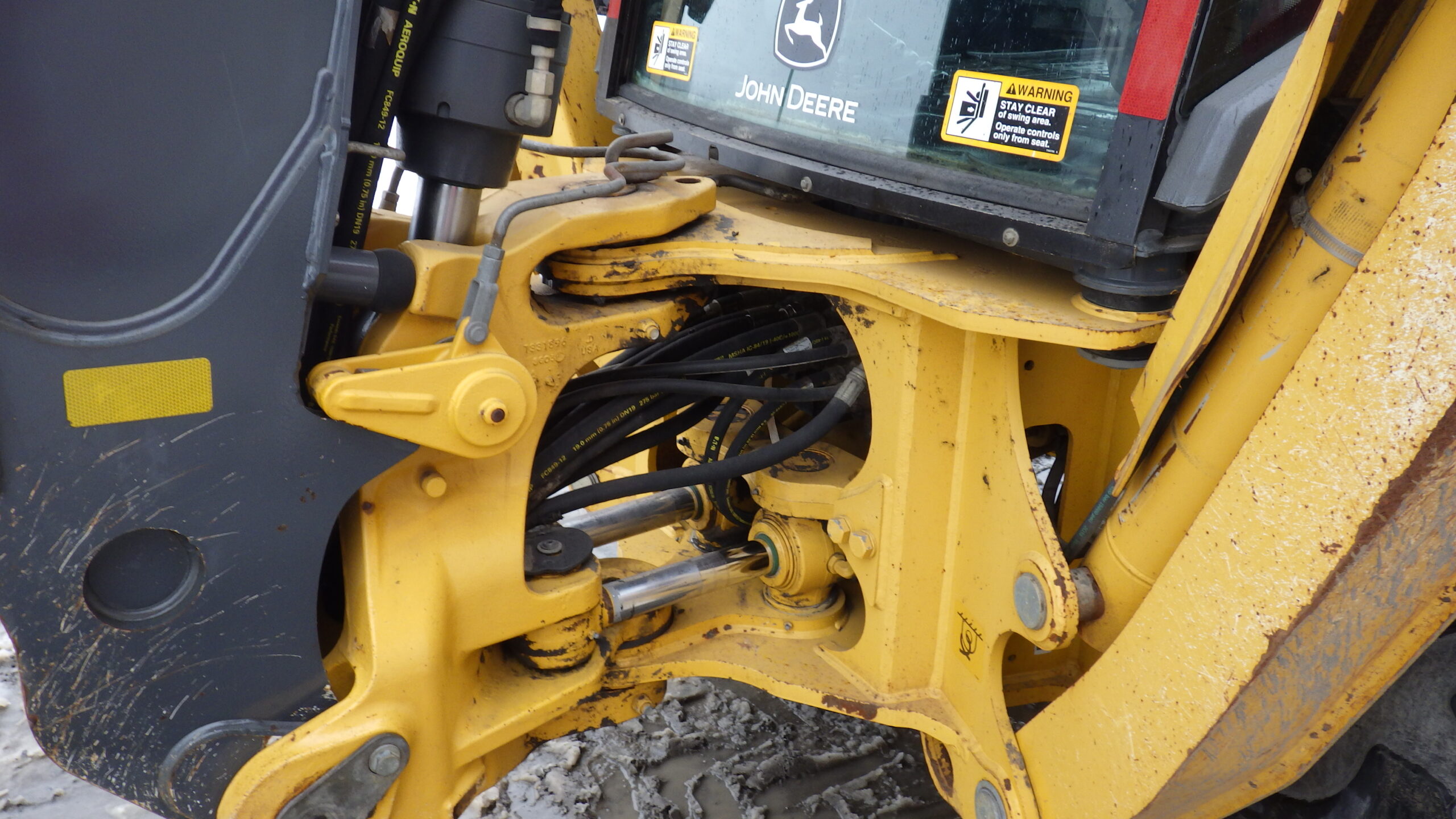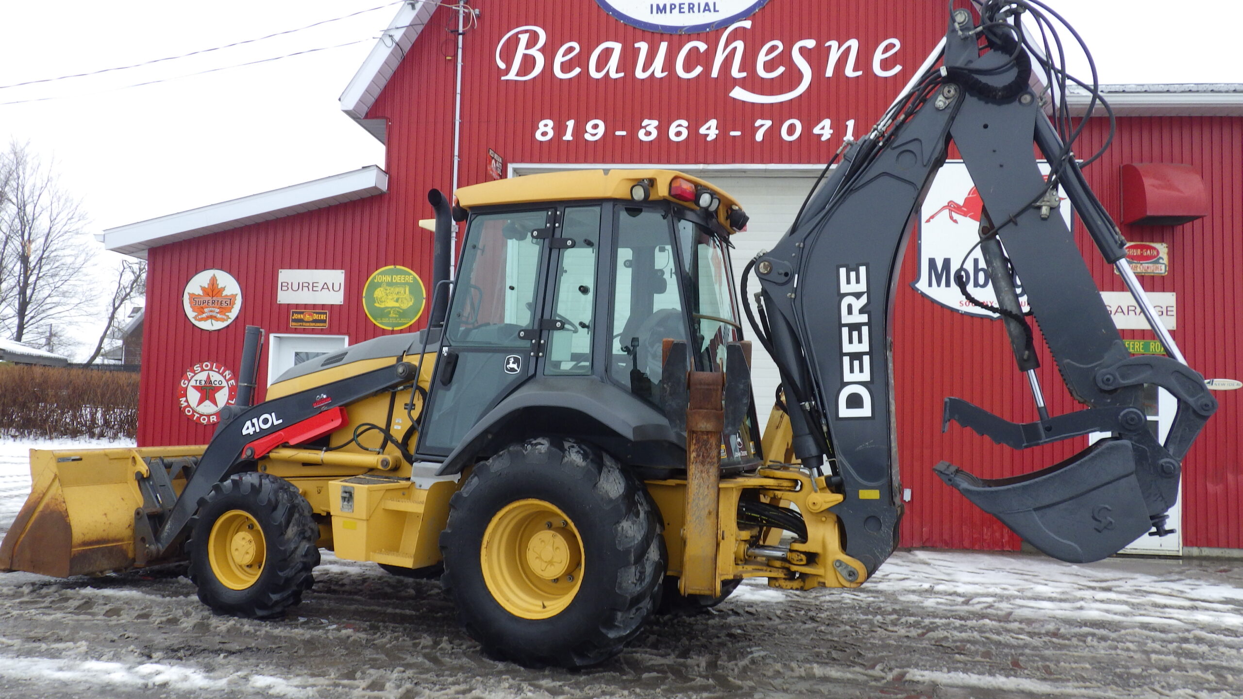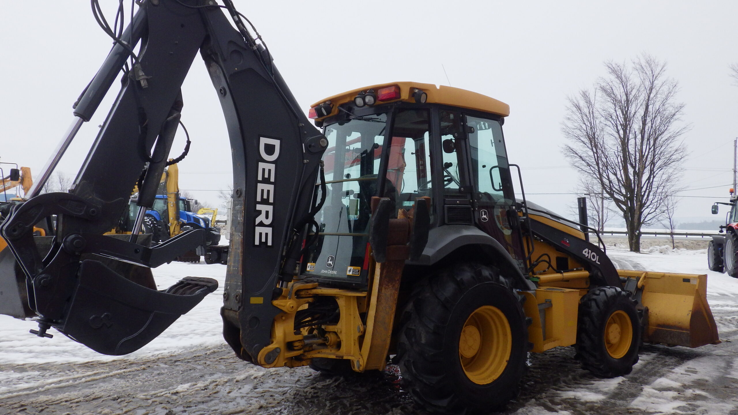 Pépine John Deere 410L, 2018, 2340H., TRANSMISSION POWERSHIFT 4x4 quick attache avant et arriere avec pouce hydrolique propre 2340 Heures.. 92 900 $