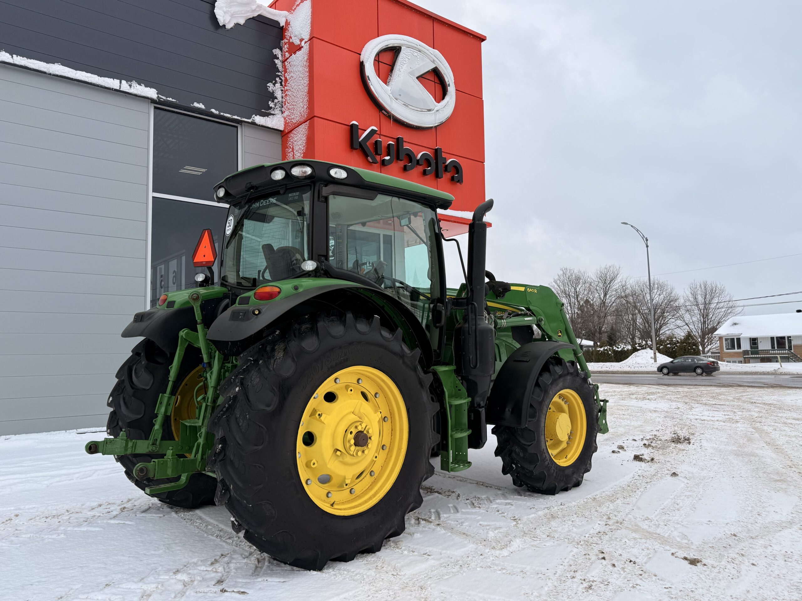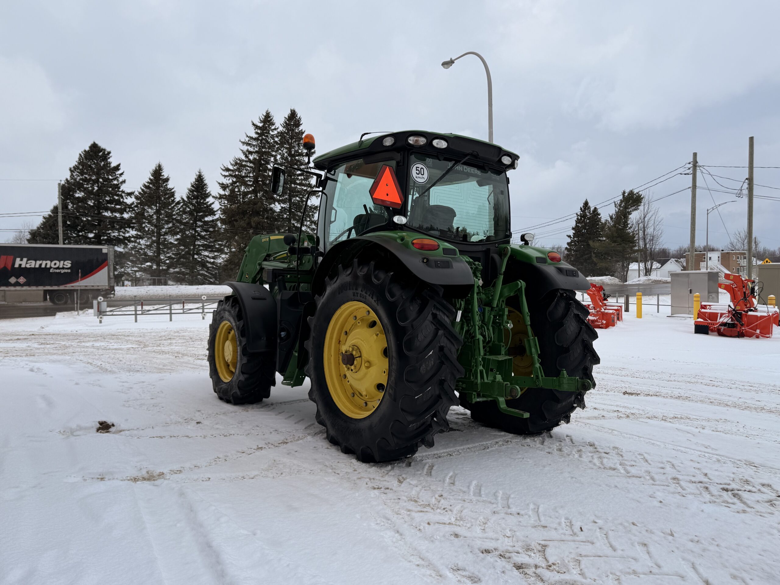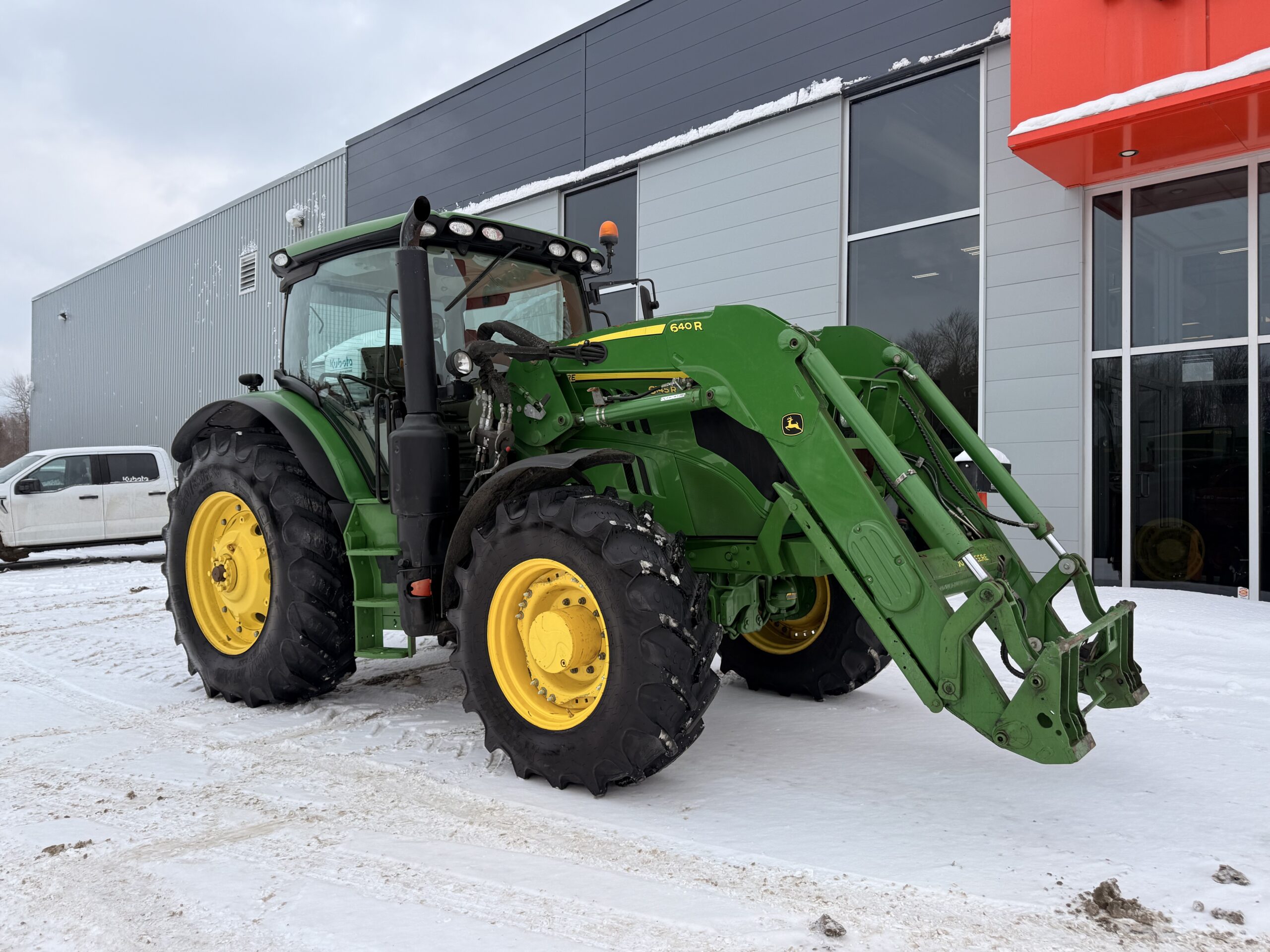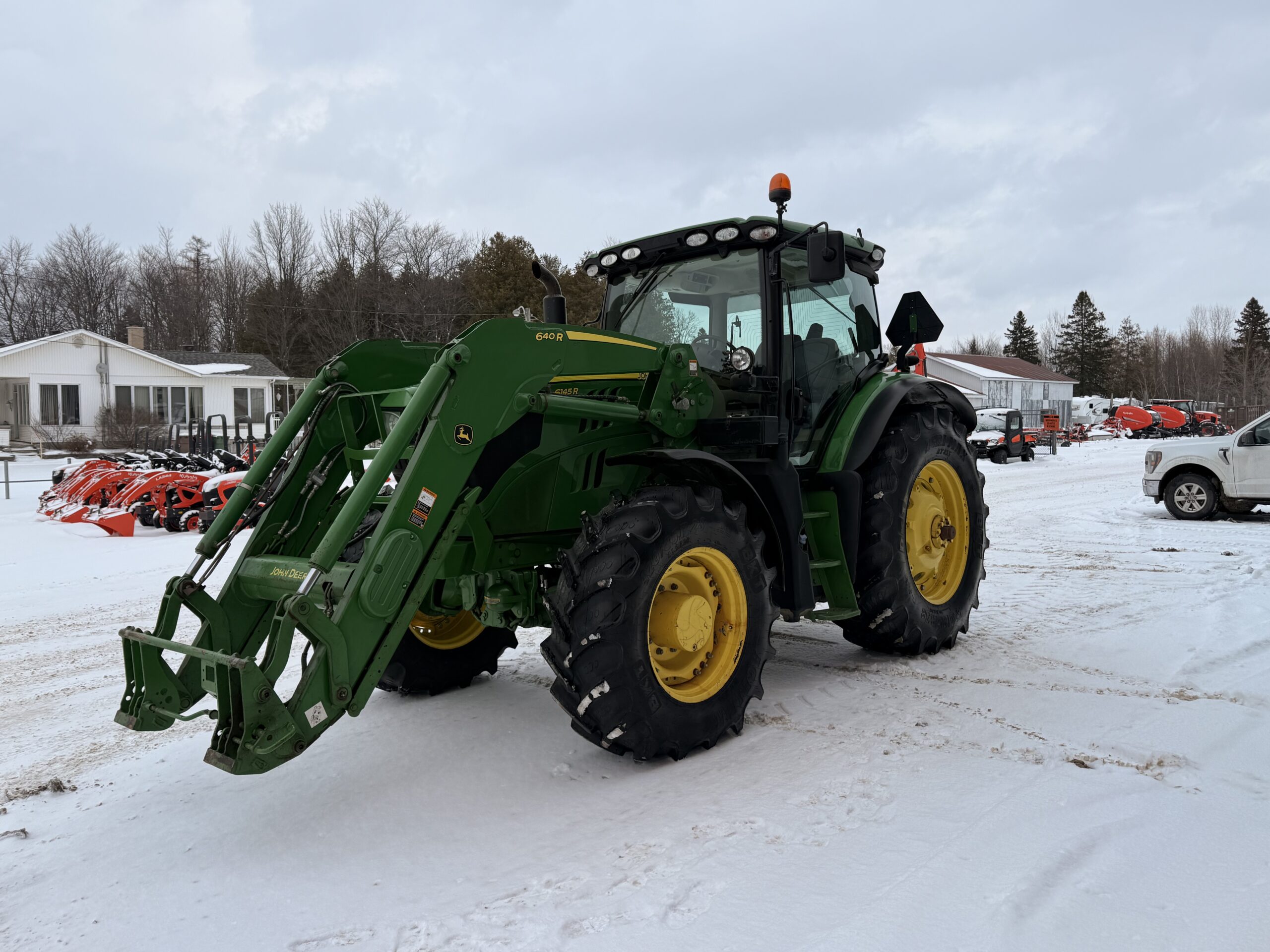Tracteur de ferme John Deere 6145R, 2019, 2790H., 2018 John Deere 6145R – 2 790 heures Transmission IVT, suspension avant, 3 sorties hydrauliques. Chargeur 640R avec 3e fonction. Pneus neufs avant et arrière : 16.9R28 / 20.8R38 Tracteur ultra propre.. 185 000 $